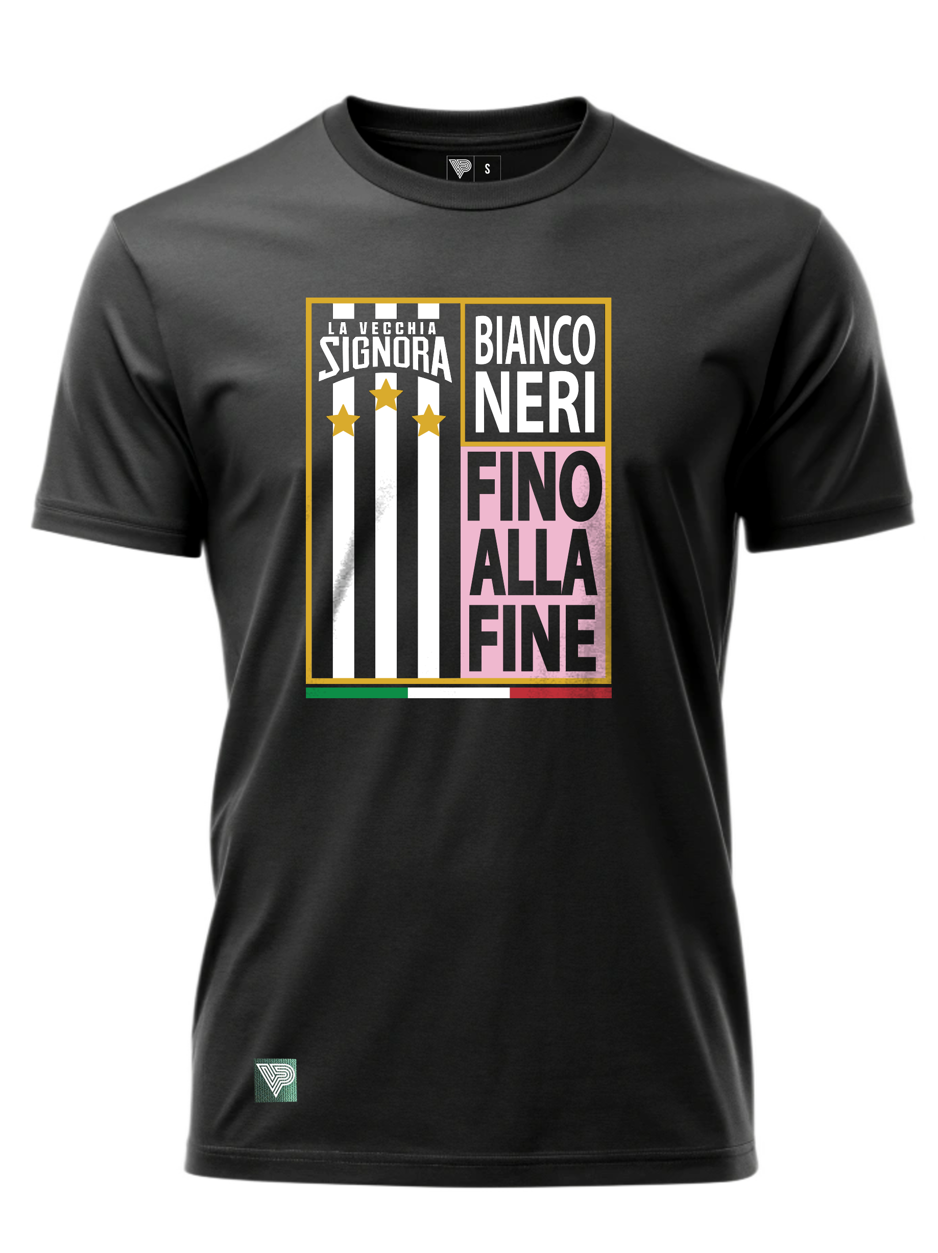 A tribute to the relentless pursuit of greatness, this vintage-style tee embodies the timeless elegance and fighting spirit of La Vecchia Signora. Defined by the classic contrast of black and white, it also features striking pink and gold accents—symbols of glory and unwavering ambition.